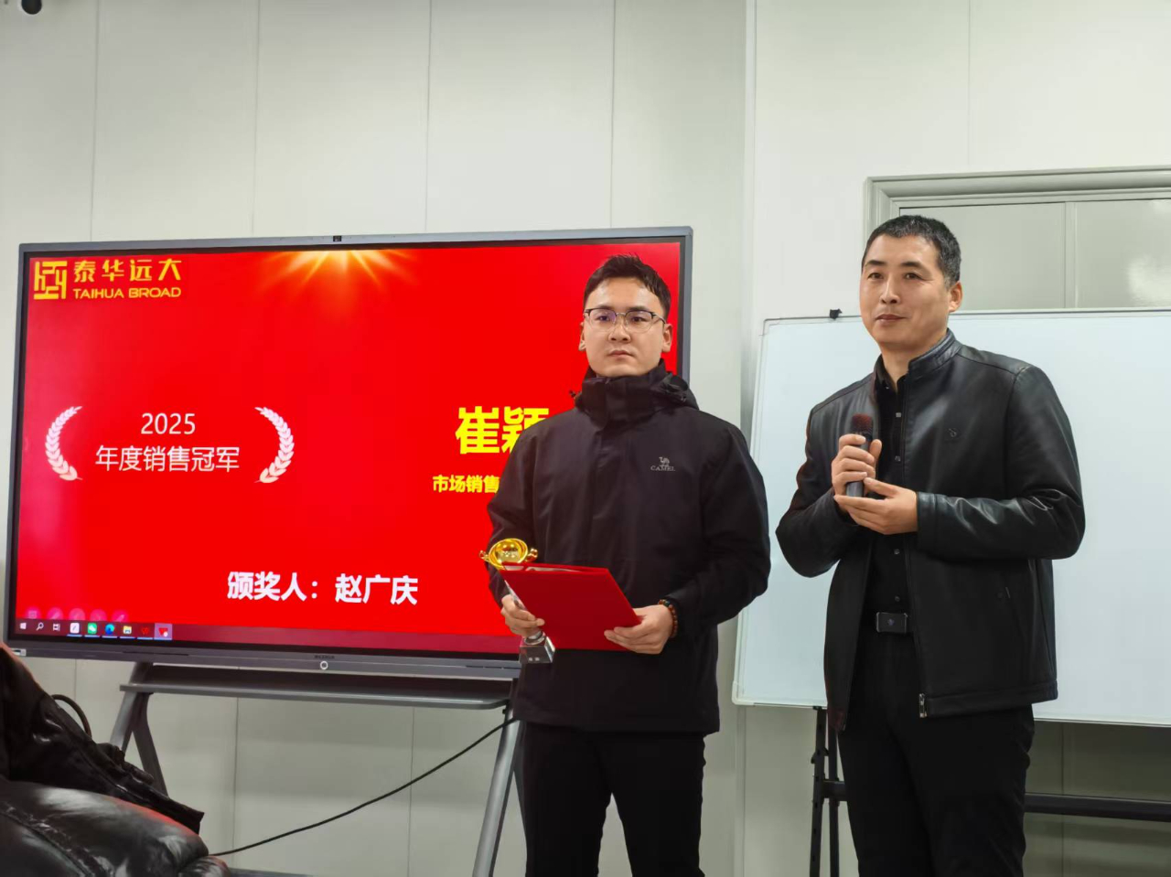 奮斗鑄就榮光,榜樣引領(lǐng)前行。為表彰先進(jìn)、樹(shù)立標(biāo)桿,大會(huì)舉行了隆重的優(yōu)秀員工頒獎(jiǎng)儀式。獲獎(jiǎng)名單:2025年度泰華遠(yuǎn)大優(yōu)秀員工:李漢斌、鄭磊、李佳星、孫勇、閆石磊;2025年度泰華遠(yuǎn)大特別貢獻(xiàn)獎(jiǎng):王文清、袁春生、張會(huì)南、金鑫、李小雪;2025年度銷售冠軍:崔穎;2025年度泰華智谷優(yōu)秀員工:袁春生;公司領(lǐng)導(dǎo)為獲獎(jiǎng)員工頒發(fā)榮譽(yù)證書(shū),并向他們的辛勤付出與卓越貢獻(xiàn)致以誠(chéng)摯感謝。